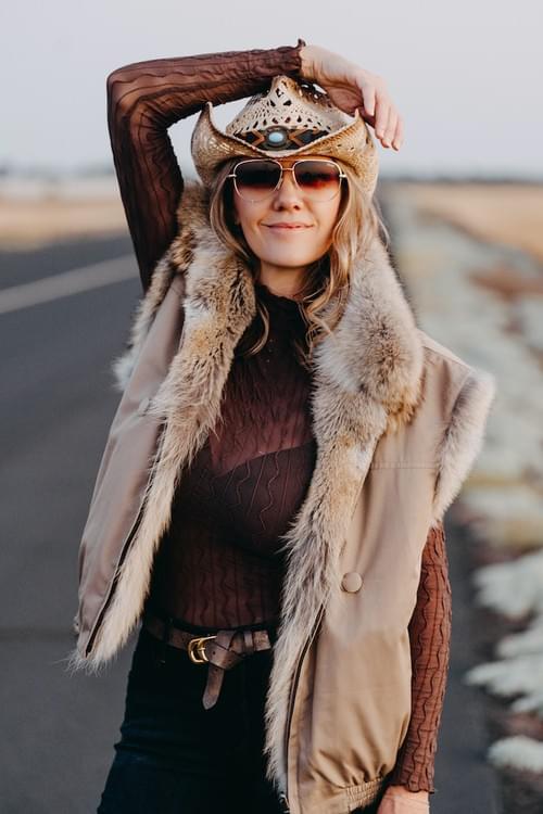 The Kaiote Coat is our love letter to vintage airfield glamour—an elevated cold-weather convertible bomber jacket designed for those who move between runway, ramp, and real life with quiet confidence. Crafted in a timeless oat-toned silhouette with rich coyote trim, it’s built to feel as striking as it is functional: the coat converts effortlessly into a vest, giving you instant versatility as temperatures shift. Worn as a vest, it becomes two looks in one—luxuriously bold with the fur facing out, or sleek and understated with the fur turned in—so you can choose your mood without changing your outfit. It’s the kind of piece that doesn’t chase attention… it commands it.